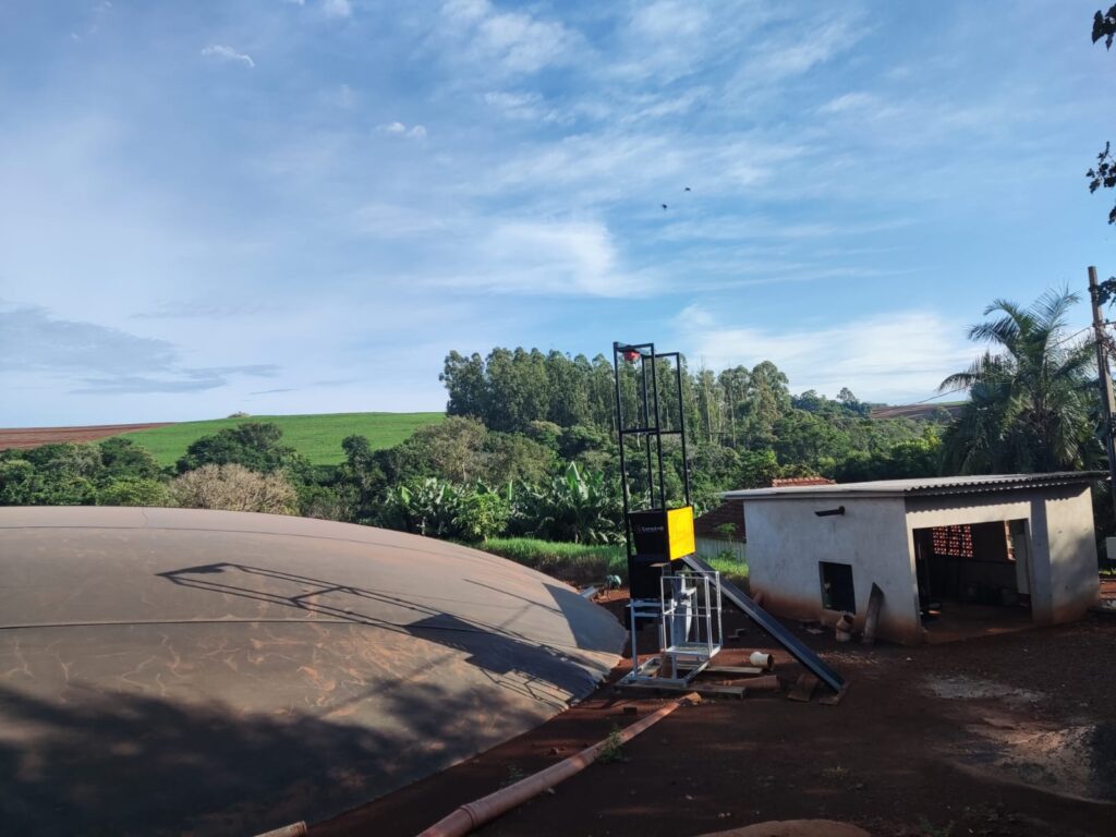 Resultante de dejetos de 200 vacas, a produção de 200m³ diários de biogás é utilizada na geração de energia elétrica e biofertilizante, aproveitados na granja. A propriedade tem biodigestor de 8.400m³ com capacidade de produção de energia de 70 quilowatt-hora (kWh) e atende 70% da demanda.